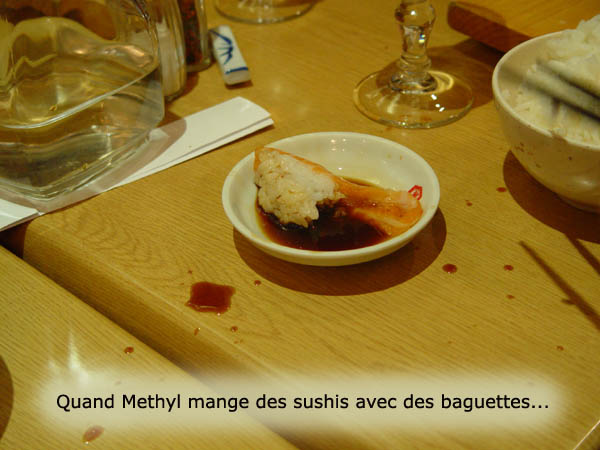 Pauvre sushis... Et la sauce avait giclé jusque sur ma planche de sushis à moi! XD Mdr...